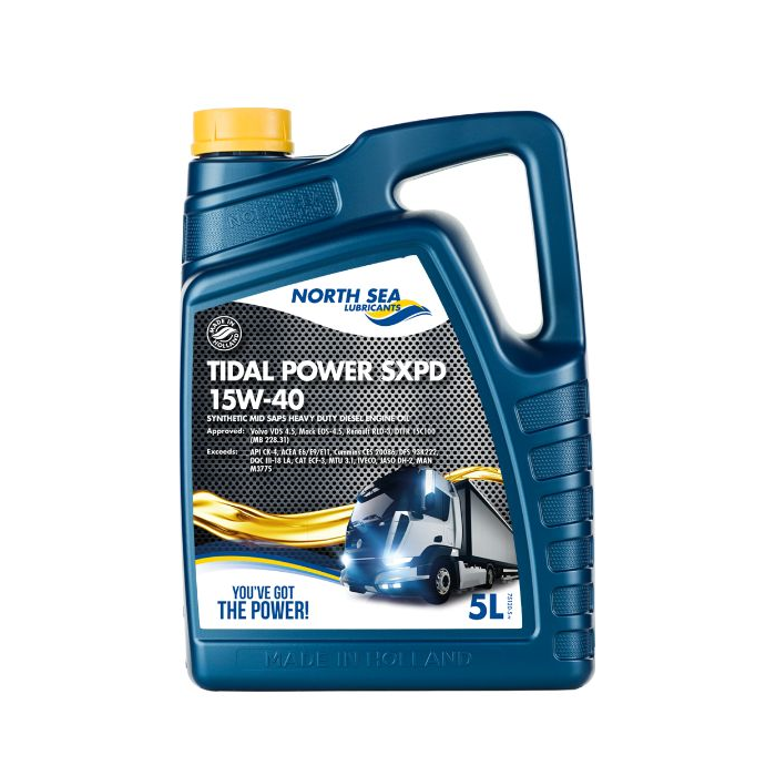 TIDAL POWER SXPD 15W-40 הוא שמן מנוע אוניברסלי בעל ביצועים גבוהים במיוחד (SHPD), המבוסס על 100% טכנולוגיה סינתטית. השמן תוכנן במיוחד לחיסכון בדלק ולעמידה בעומסים כבדים במנועי דיזל של רכבי מסחר קלים וכבדים. הוא מותאם לעבודה בתנאי הפעלה קשים לאורך כל השנה ומיועד למנועי Euro-4, Euro-5 ו-Euro-6.